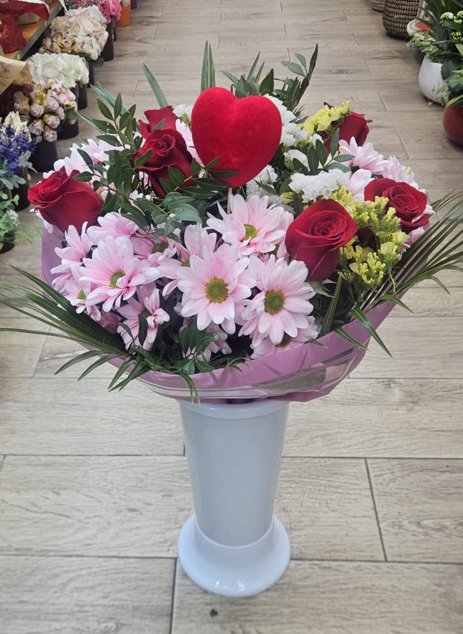 Lo mas importante de todo es poner el ramo en agua tan pronto como sea posible, disuelve el sobre de nutrientes en el agua, revisa que el agua llega a todos los tallos del ramo, pero sin pasarse, con que los tallos se sumerjan en unos 4/5 dedos de agua bastaría.